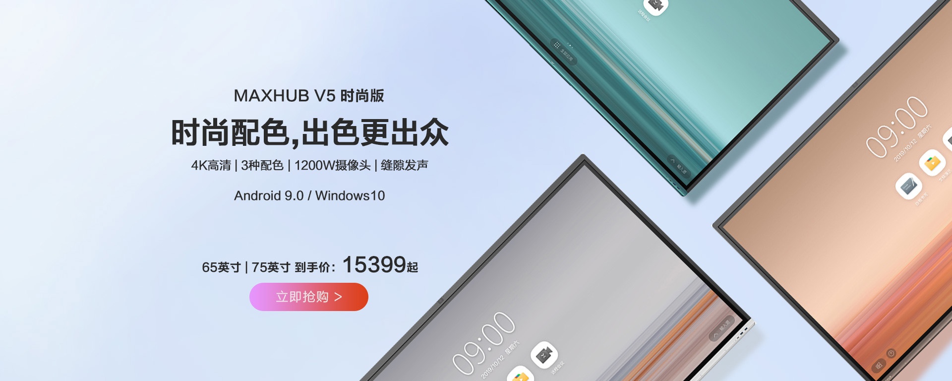 了解更多MAXHUB V5 标准版会议平板集投影、幕布、电子白板、广告机、电脑、麦克风、音箱等功能于一体,仅需一台设备,即可解决现代企业的本地讨论、企业培训、远程视频会议等需求,高效便捷。