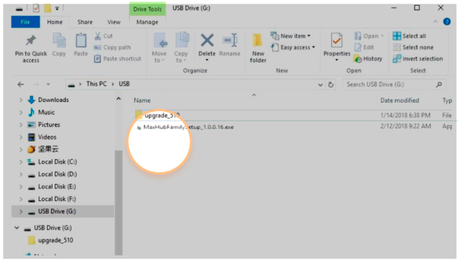 ① 客服人员发给您的MaxHubFamilySetup.exe文件放入U盘。